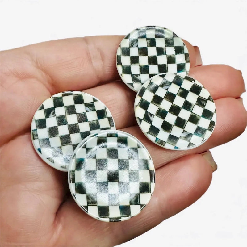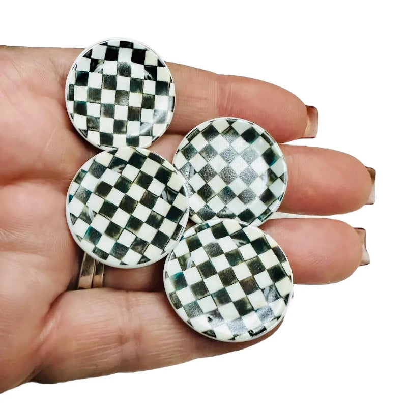 This listing is for a set of ceramic dishes featuring snowmen. The set includes 4 dishes, each measuring 1 inch.
