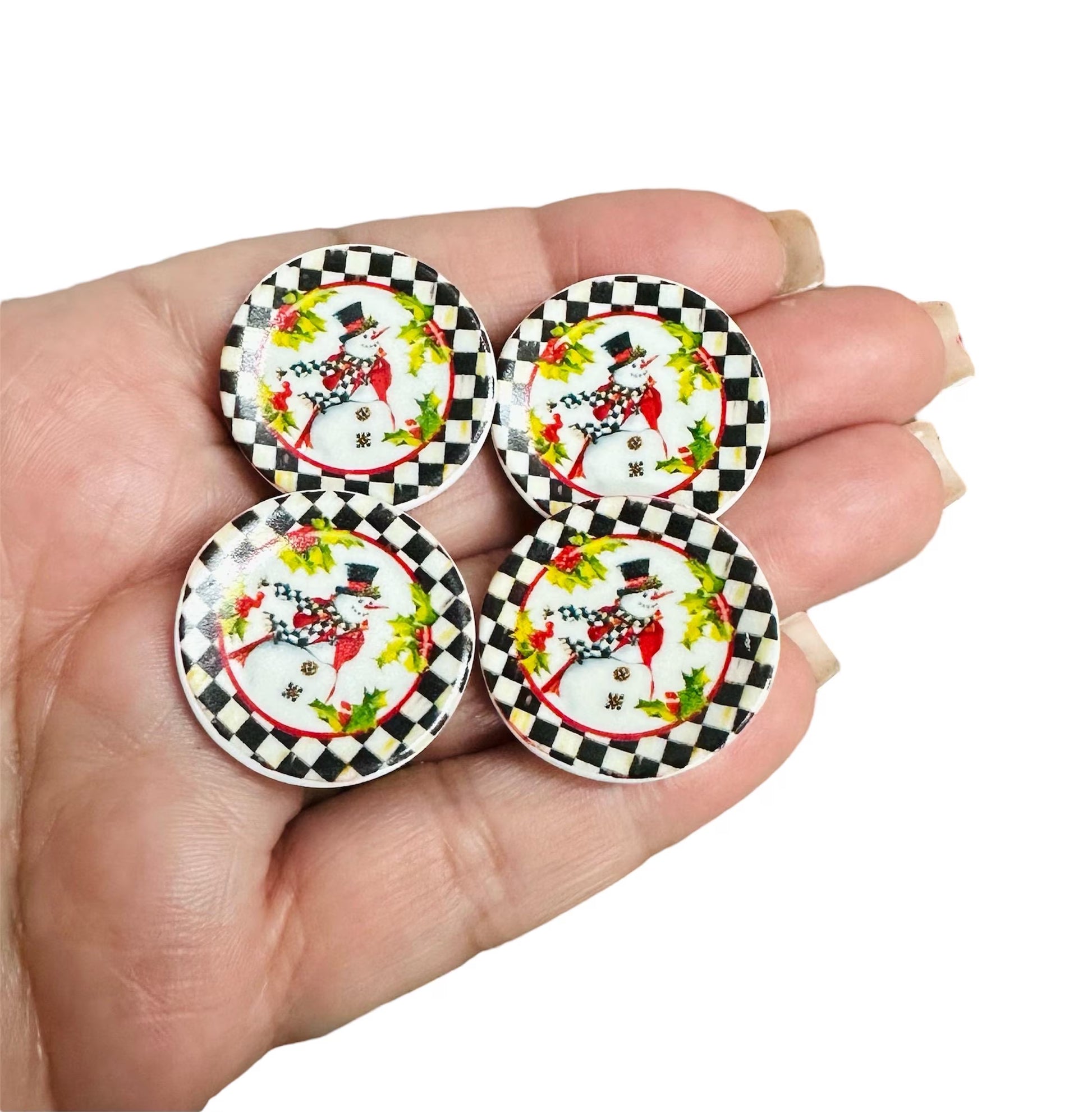 This listing is for a set of ceramic snowman dishes. The set includes 4 dishes, each measuring 1 inch. For display purposes only.