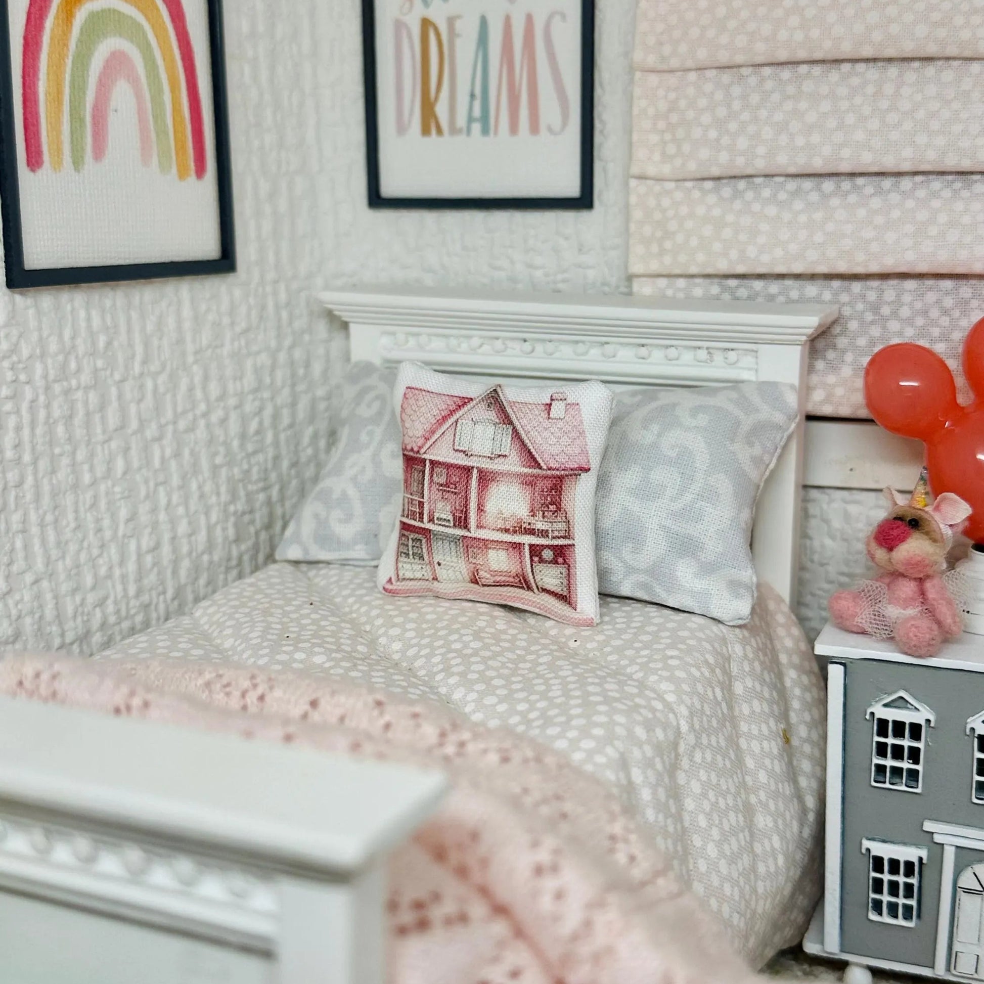 This listing is for a 1:12 scale miniature pink dollhouse pillow.